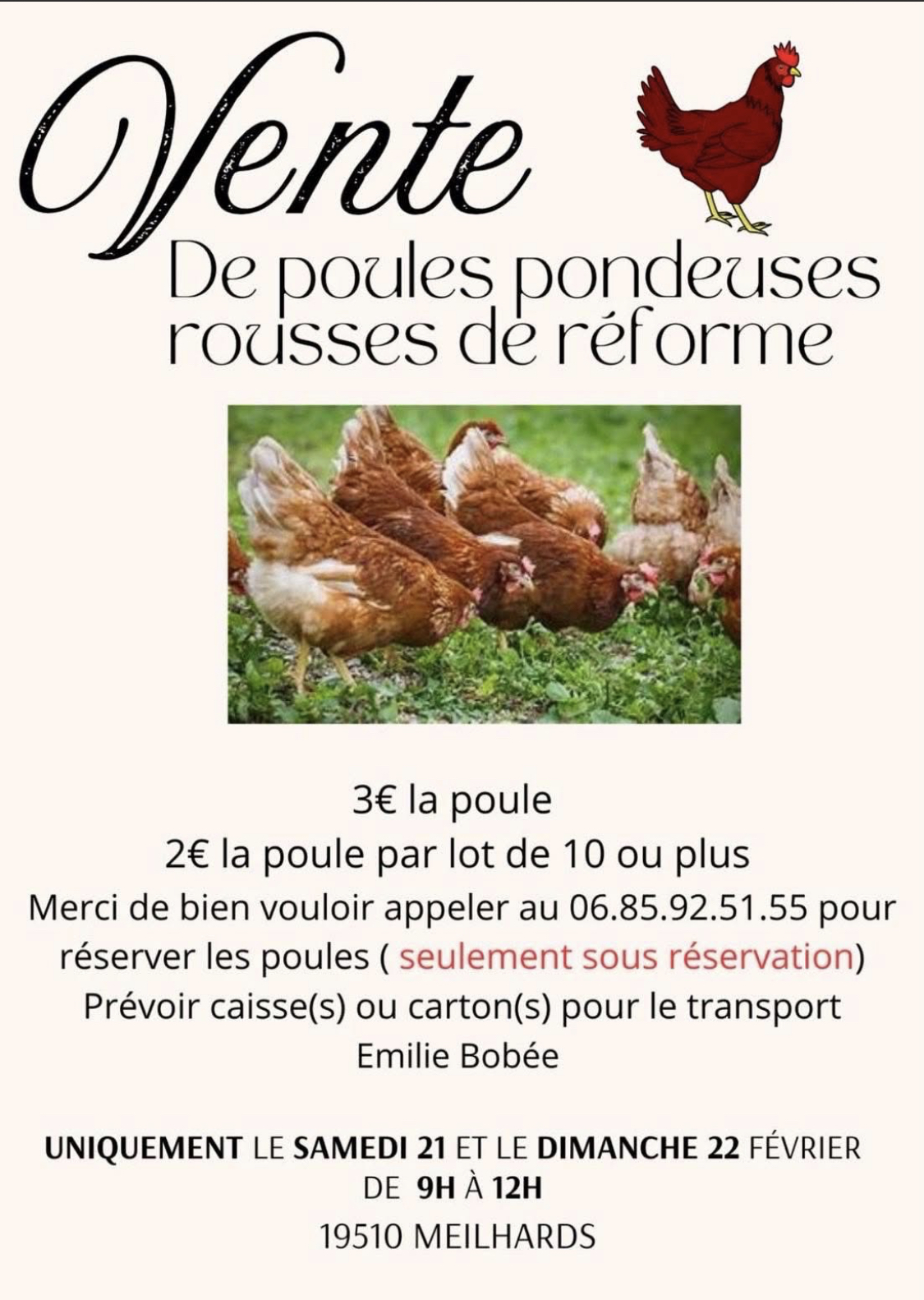 Vente de poules pondeuses de réforme